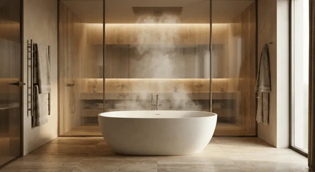 The bathroom is your private sanctuary. It should feel like a five-star hotel. Install a freestanding soaking tub. I like stone resin tubs from Victoria + Albert. They hold heat better than acrylic. Add a steam shower with aromatherapy. Use a “rain” showerhead from Dornbracht. Heated floors are a must. They cost about $10 per square foot. It is a small price for a big impact on winter mornings. Use fluted glass for privacy. It adds texture without blocking light.