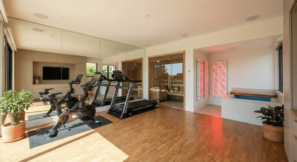 Standard gyms are often ugly. A luxury fitness suite is beautiful. Use cork flooring for sound. Add floor-to-ceiling mirrors. I suggest a NordicTrack or Peloton integrated into the design. But go further. Add a cold plunge pool or a sauna. I have seen a rise in “biohacking” rooms. These include red light therapy panels. Design the room with plenty of ventilation. Use a Sonos system for high-quality audio. Wellness is the new status symbol. Your home should reflect that.