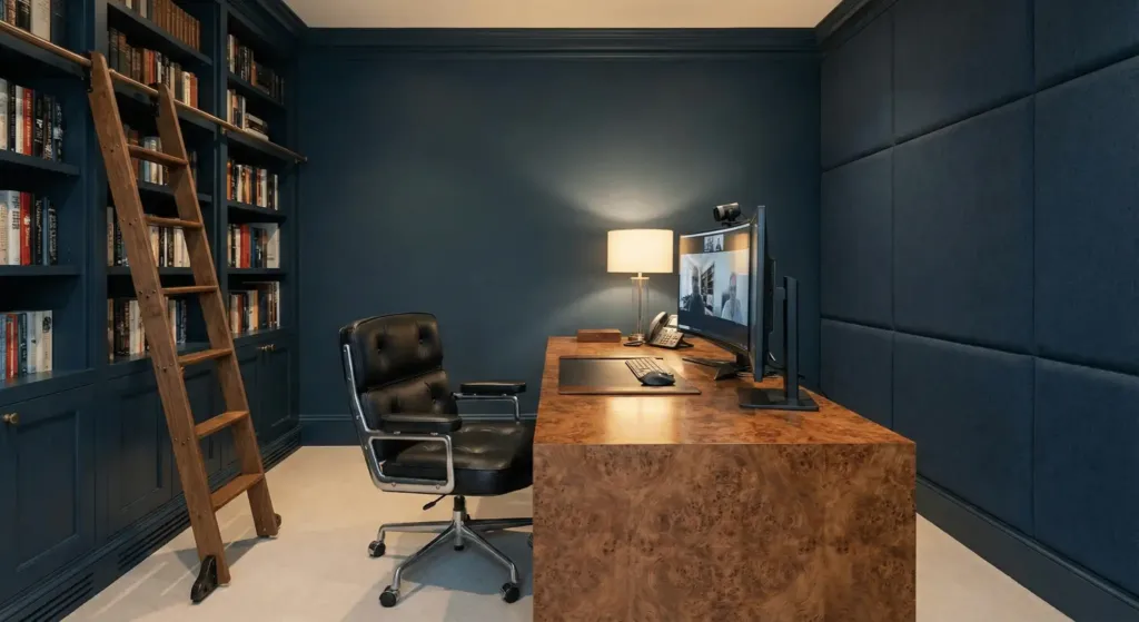 The “home office” is now a permanent fixture. It needs to look professional for video calls. Use dark paint colors like Farrow & Ball “Hague Blue.” Add a custom desk made of burl wood. I recommend an Eames Executive chair. It is a classic for a reason. Ensure you have proper soundproofing. Use acoustic panels disguised as fabric wall coverings. This keeps your calls private. A library ladder adds a touch of old-world charm. It makes the space feel like a serious place of work.