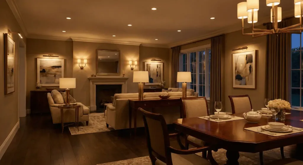 Luxury is never a single overhead light. You need three layers. These are ambient, task, and accent lighting. Use recessed cans for general light. Add wall sconces for warmth. Use art lights for your paintings. I recommend the Lutron HomeWorks system. It allows you to program “scenes.” You can have a “Dinner Party” setting. This dims the lights to 20% and warms the color temperature. Avoid 4000K bulbs. They look like a pharmacy. Stick to 2700K for a golden glow. This creates a mood that feels expensive.