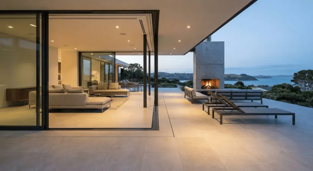 Modern luxury blurs the lines between inside and out. Use large sliding glass walls. Brands like Fleetwood or Panoramah! offer thin frames. They allow for massive glass spans. Your living room should extend onto a terrace. Use the same flooring material for both. This creates a seamless visual. I worked on a home where we used limestone inside and out. The house felt twice as large. Add a fireplace to the patio. This allows you to use the space in autumn. It adds a resort feel to your daily life.