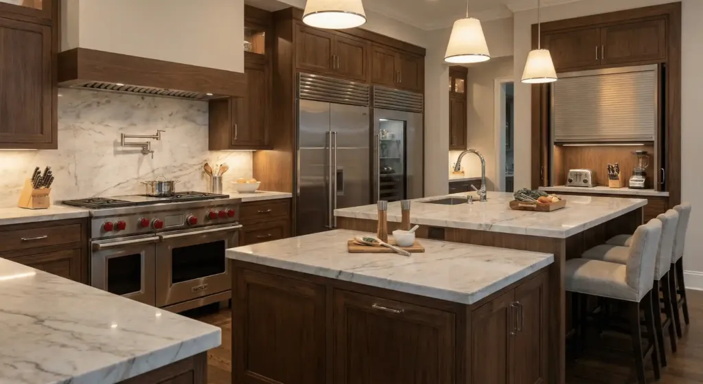 A luxury kitchen is for more than cooking. It is for entertaining. You need the “Pro-Sum” look. This means Sub-Zero refrigerators and Wolf ranges. These brands are the gold standard. I prefer 48-inch ranges with red knobs. Add a pot filler above the stove. Use a double island if you have space. One is for prep. The other is for guests to sit. Hide your small appliances in an “appliance garage.” This keeps the counters clear. A clean counter is a luxury counter.