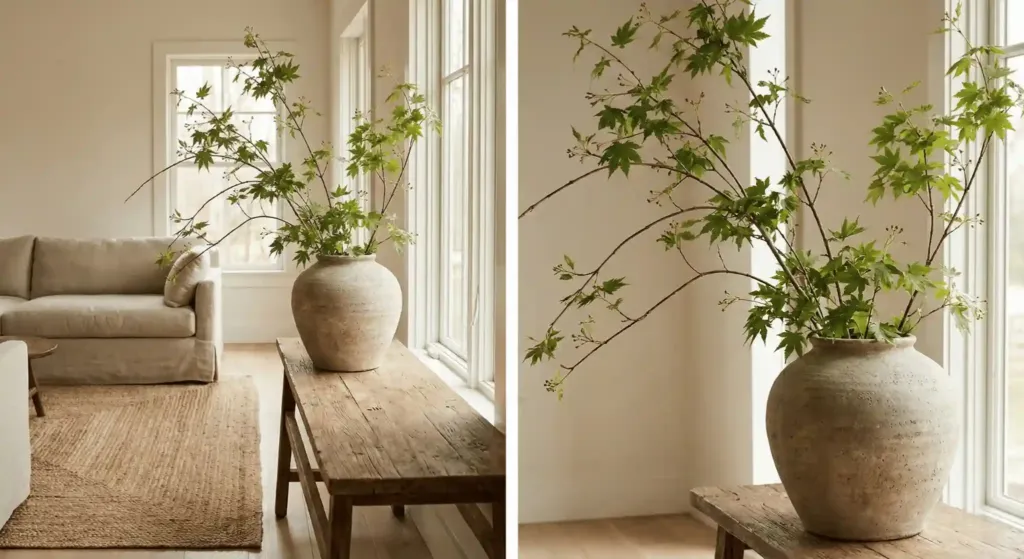 Small grocery store bouquets look fine, but they don’t command attention. Look at any high-end interior design magazine. You will see massive, five-foot tall branches in a heavy ceramic vase.