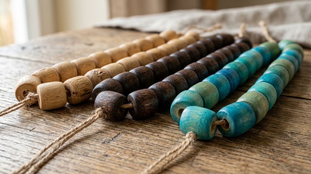 They make a gentle, wooden sound when moved. It is often described as a “rainstick” effect. Most people find it relaxing, but if you live with someone sensitive to repetitive sounds, test a small strand first.