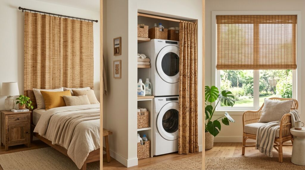 A friend of mine used a bamboo curtain to hide her laundry nook. It turned a functional eyesore into a focal point of her interior inspiration.