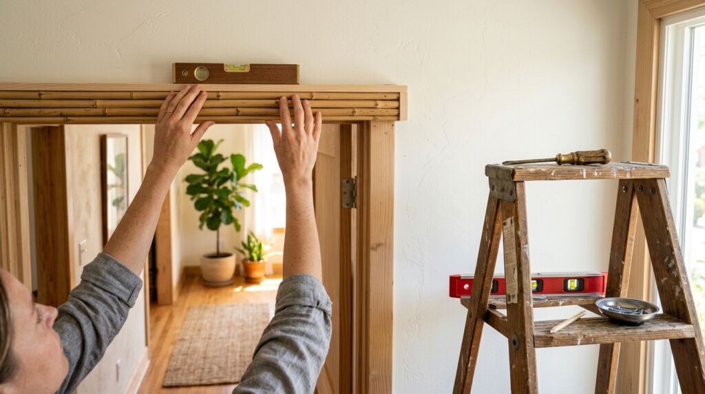 Most people screw the header directly into the door frame. This is a mistake. For the 2026 look, you want to mount the curtain slightly higher than the opening. This creates the illusion of taller ceilings.