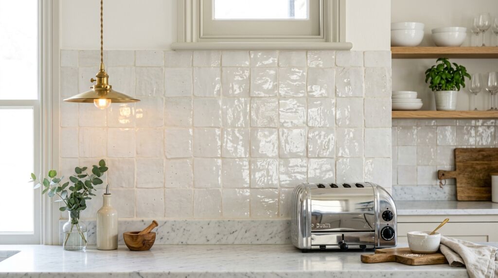Your metals don’t live in a vacuum. They sit against your walls. If you have a kitchen with brass, a warm white tile is best. If you use a cold gray tile, the brass will look out of place.