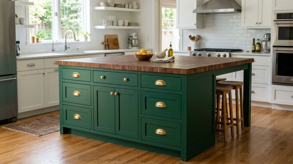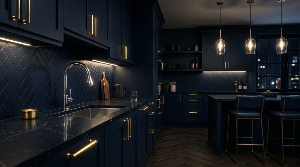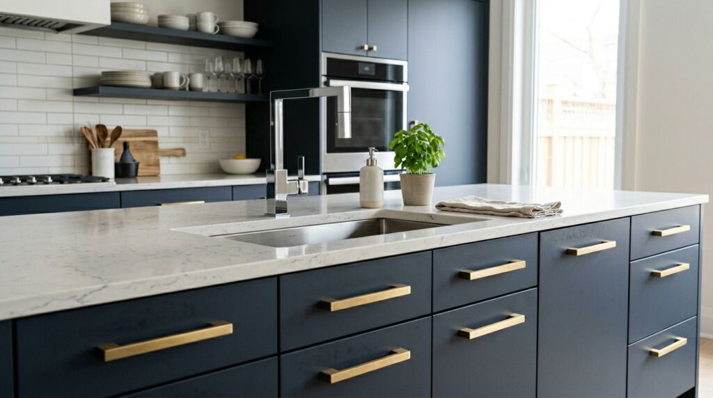 I did this in a remodel in Denver. We used navy blue cabinets on the island with thick brass bars. The rest of the kitchen was white with slim chrome handles. The result was stunning. It felt like a high-end bistro. This approach allows you to experiment without committing the whole room to a single look. It also makes it easier to update later.