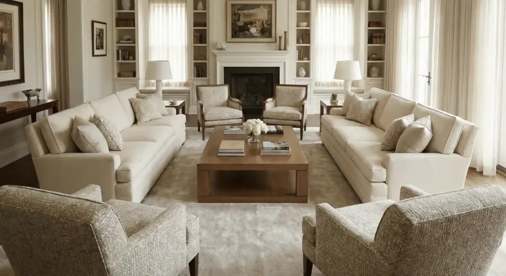 This layout is perfect for conversation. It feels more formal than a sectional. I once convinced a client to trade their L-shaped sectional for two sofas. They were worried about losing seating. In reality, they gained more space for guests to move around. The room felt twice as large. Use a large coffee table to bridge the gap between the seats.