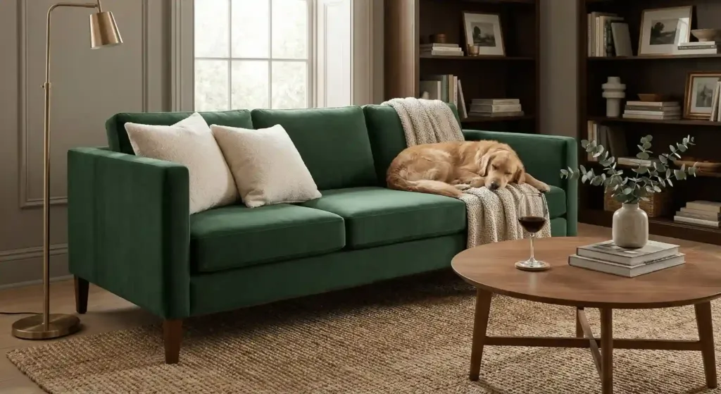 Texture is a silent luxury. Velvet catches the light in a way that flat cotton cannot. If you want an elegant living room, get a velvet sofa. Navy, forest green, or champagne are classic choices.