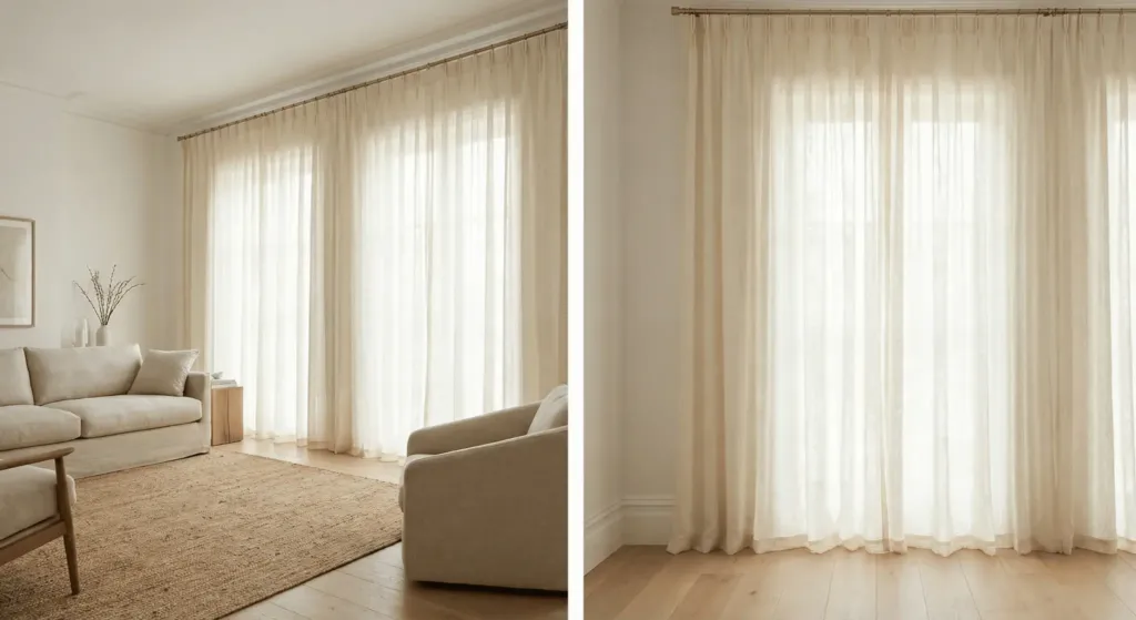 Window treatments are often an afterthought. Many people use cheap blinds. For true elegance, you need fabric. Linen sheers allow light to filter through while providing privacy.