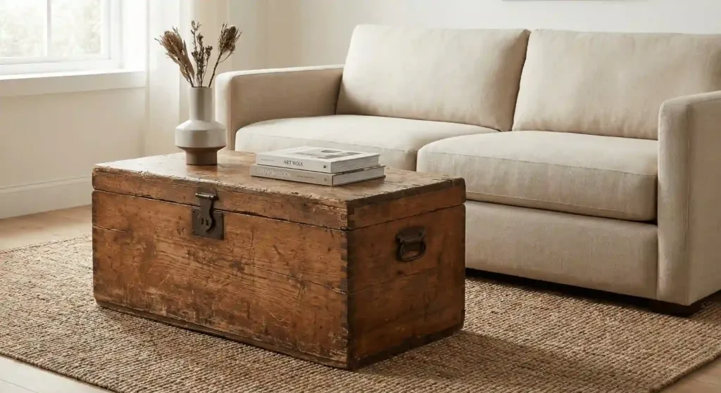 A room full of new furniture looks like a catalog. You need something old to ground the space. A vintage wood trunk or an antique chest of drawers adds character. It provides a “soul” to the room.