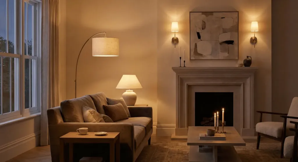 Use warm bulbs. Look for 2700K on the box. Avoid “daylight” bulbs which are 5000K. They look blue and cold. I spent years wondering why my living room felt like a hospital. I changed the bulbs to warm white and the room instantly felt cozy.