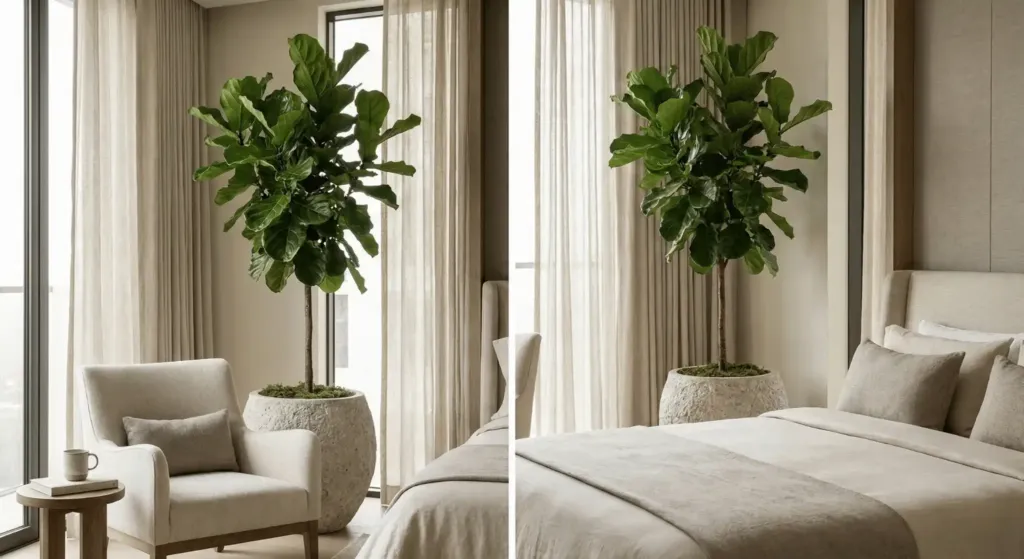 Use a high-quality stone pot. The green of the leaves pops against neutral luxury palettes. It also improves air quality, which helps with sleep.