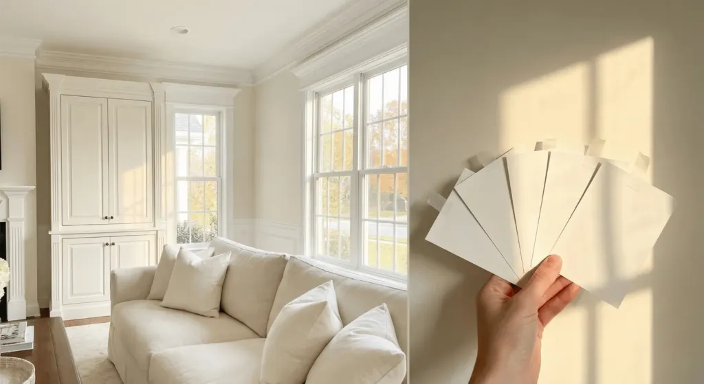 In 2023, I helped a client who wanted a “pure white” room. We used Sherwin-Williams Alabaster on the walls. We picked Benjamin Moore Swiss Coffee for the cabinets. The slight shift in tones made the room feel architectural. If you use one flat white, the room disappears. When you layer shades, your eyes see the shapes of the furniture. I recommend getting five paint swatches. Tape them to your wall. Watch how they change at 4 PM. That is when the true colors show up.
