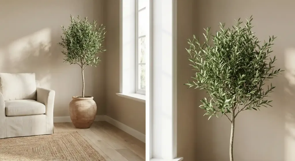 A neutral room needs something living. Green is a neutral in nature. A large fiddle leaf fig or an olive tree adds height and color. It breaks up the beige without clashing.