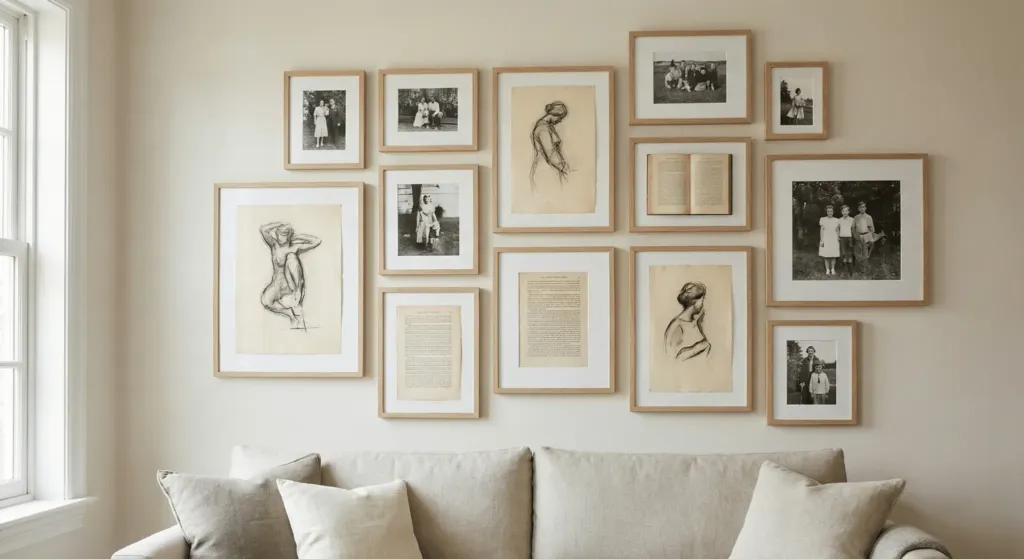 I made a gallery wall using old book pages and simple wood frames. I spent 30 dollars at a thrift store on the frames. By keeping the colors the same, the focus stays on the shapes. It feels calm rather than busy. Space your frames exactly 2 inches apart for a clean look.
