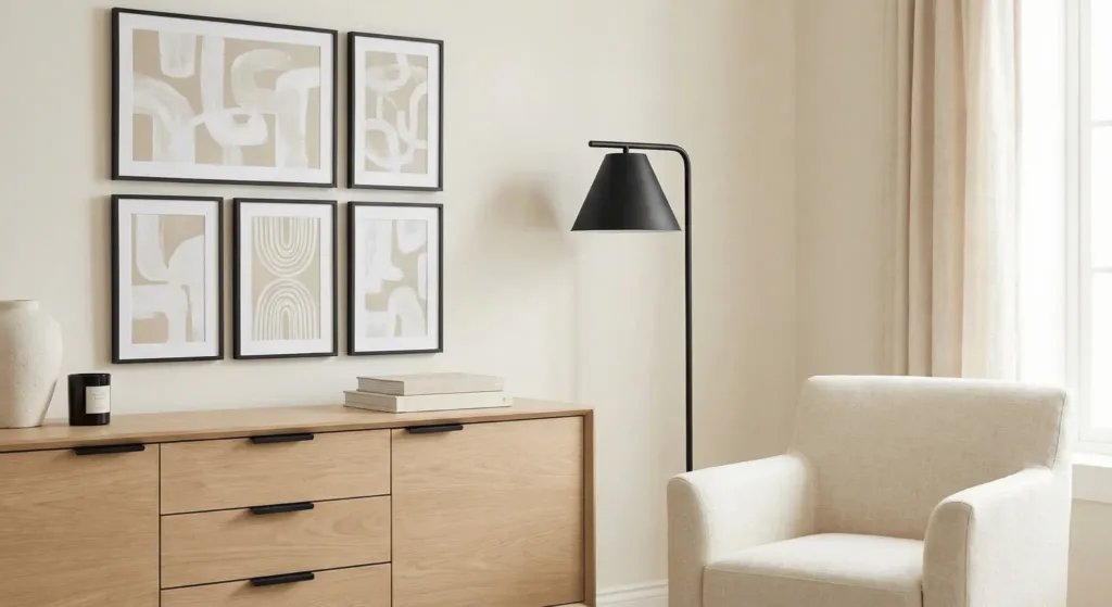 I replaced all the silver knobs in my living room with matte black ones. I spent 40 dollars total. The room immediately looked more “designed.” You can find black metal frames at Target or IKEA. Use them for a gallery wall. The black lines create a grid that keeps the neutrals from floating away. Just don’t overdo it. Two or three black pieces are enough for a standard room.