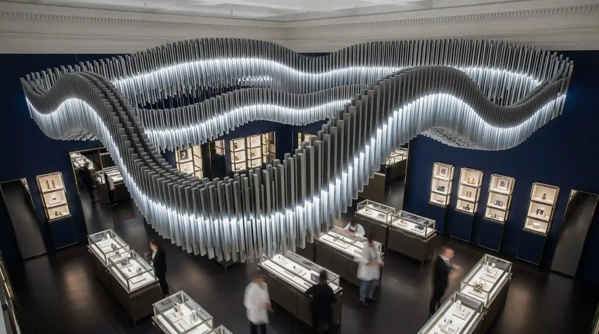Chronos Global needed a floating light installation but couldn’t attach to the historic ceiling. Using parametric design, we generated 3,000 aluminum fins, optimizing weight by 35% through strategic cut-outs. We simulated glare-free lighting paths ensuring watches sparkled without blinding customers, increasing dwell time and sales.