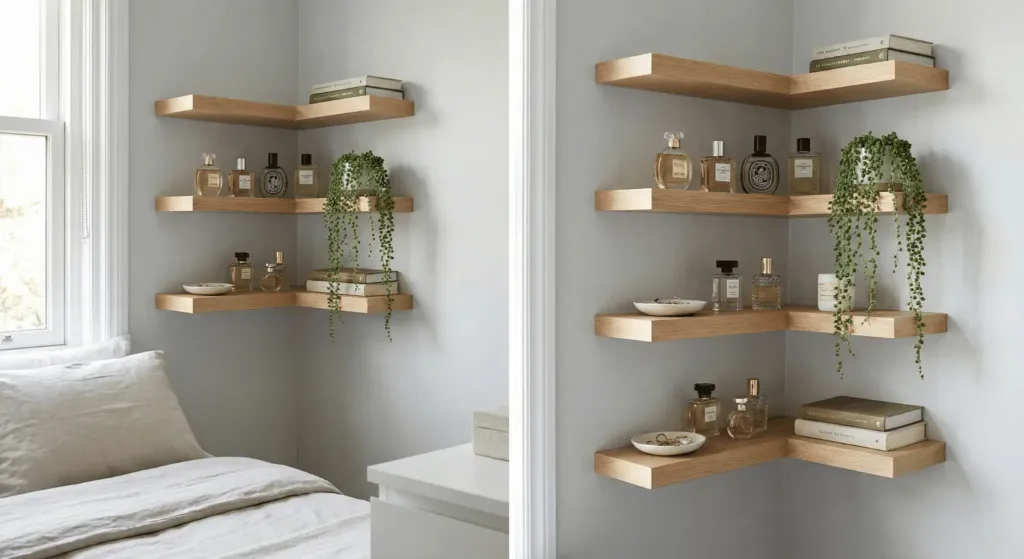 11. Utilize Corner Shelving for Dead Space