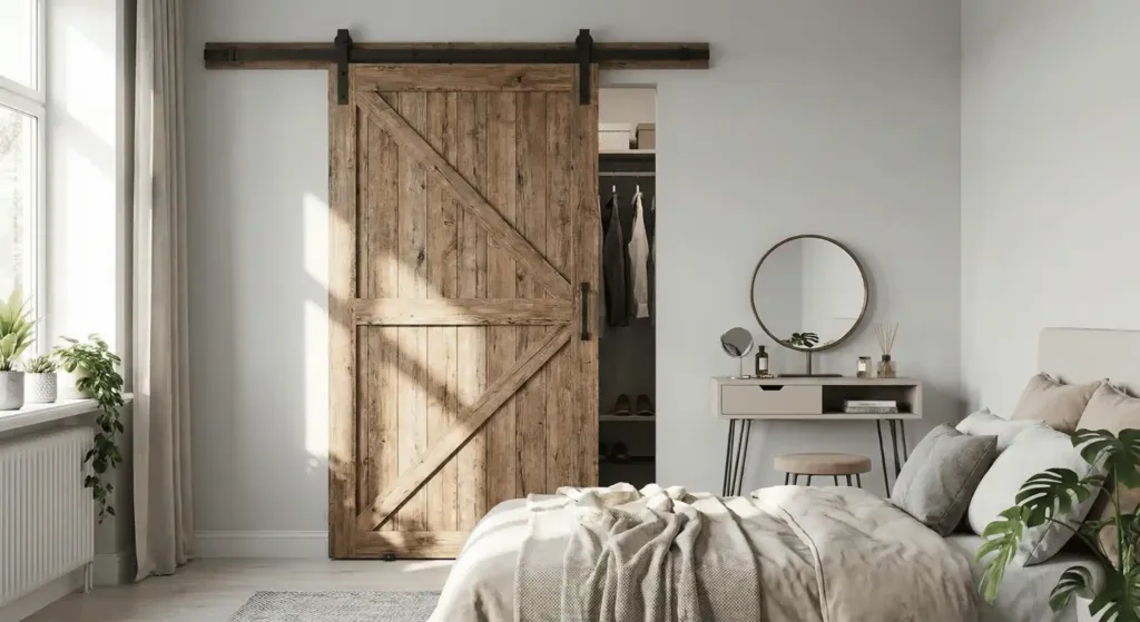 Standard doors require a swing radius of about nine square feet. In a small bedroom, that radius is dead space. You cannot put furniture there. I replaced my bedroom door with a sliding track system from Wayfair. The hardware cost $120.