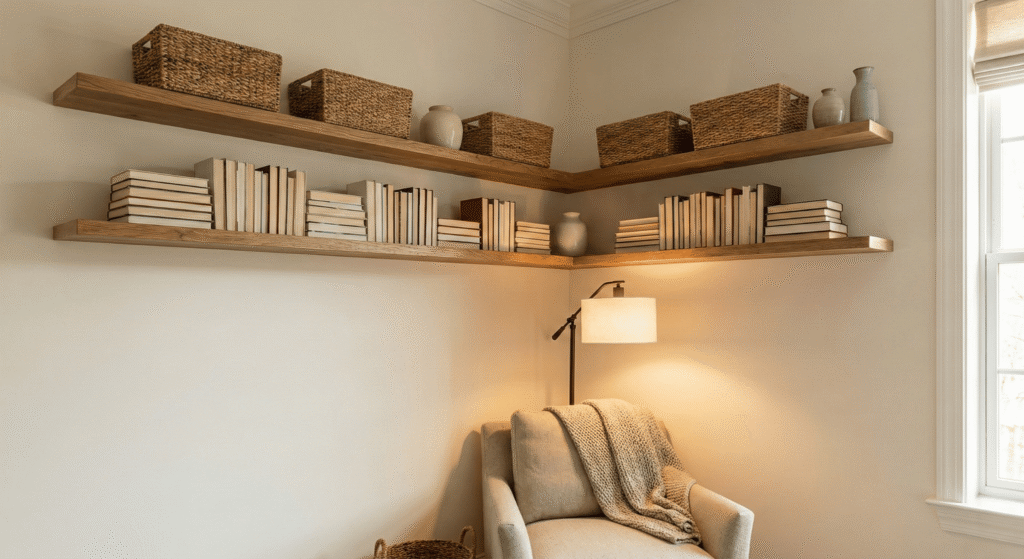 Use the corners of the room for storage.